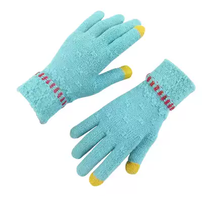 Gloves female winter finger Korean version plus velvet warm wool students riding autumn and winter ladies touch screen driving knitting