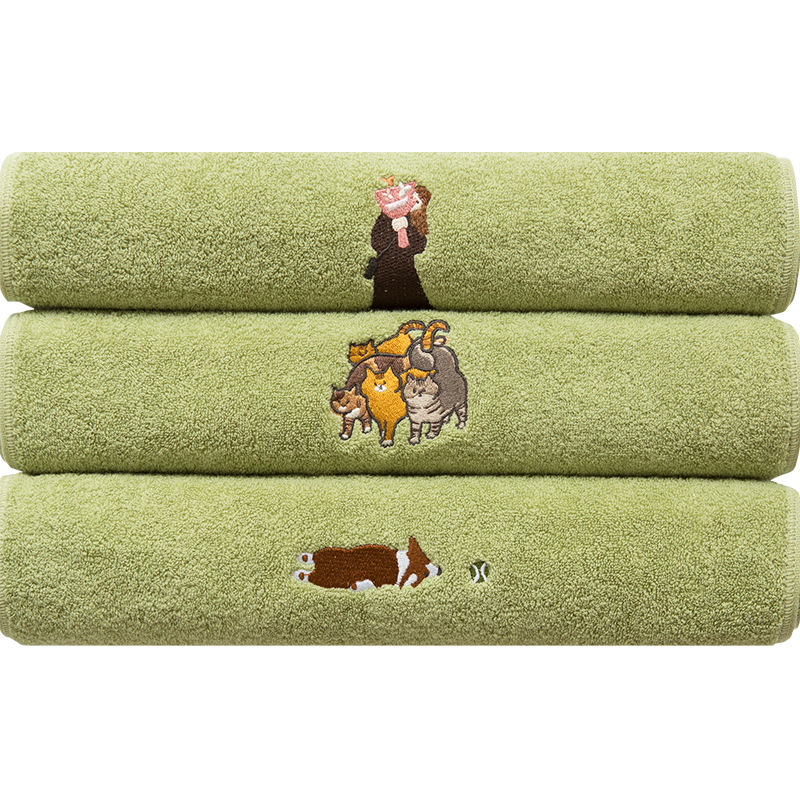 Original green bath embroidery towel ins wind thickened absorbent soft adorable pure cotton couple wash face towel hand towel