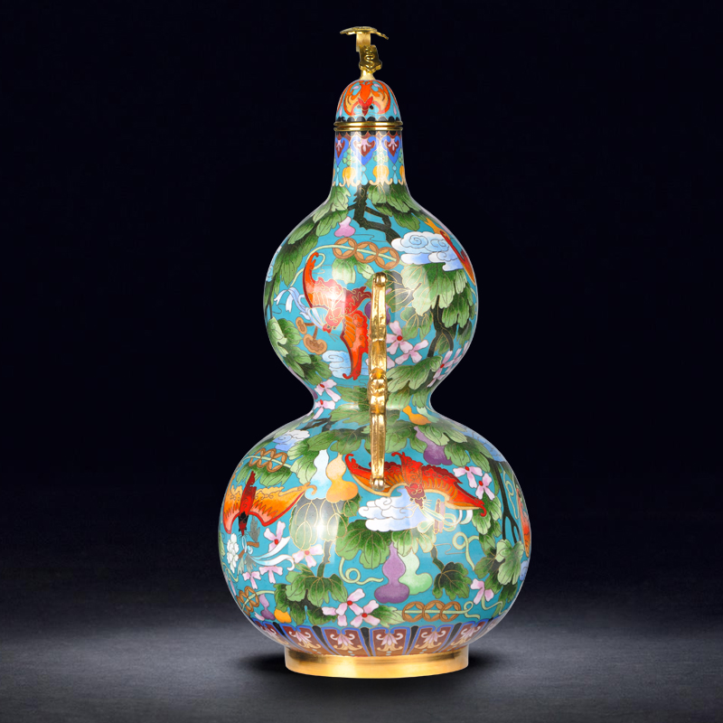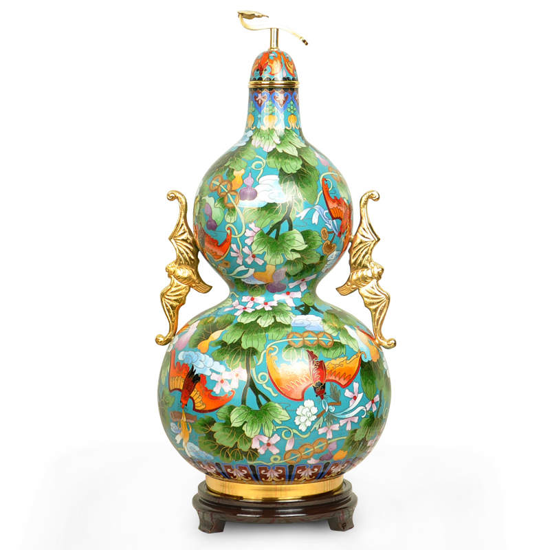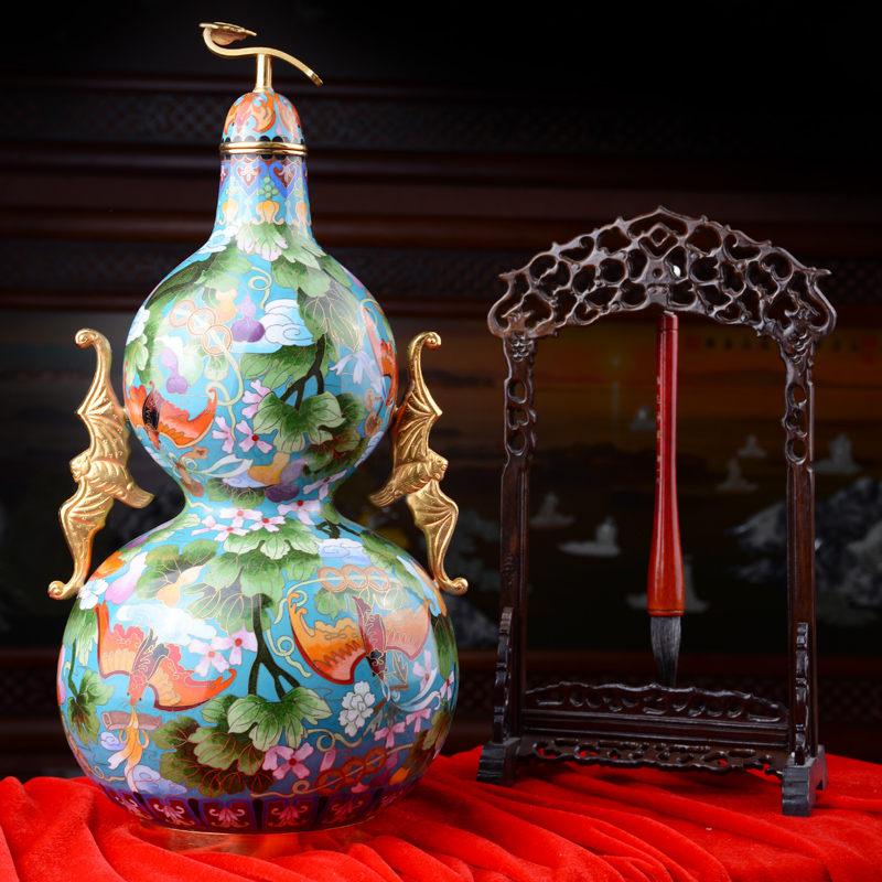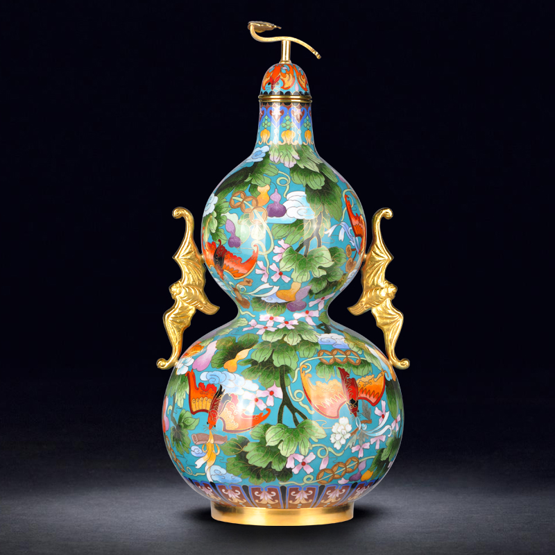 15 Inch Jingtai Blue Vases Bat Ear Calabash Calabash Bottle Copper Tire Enamel Home Swing Accessories Craftsmanship Gift Hem Blue