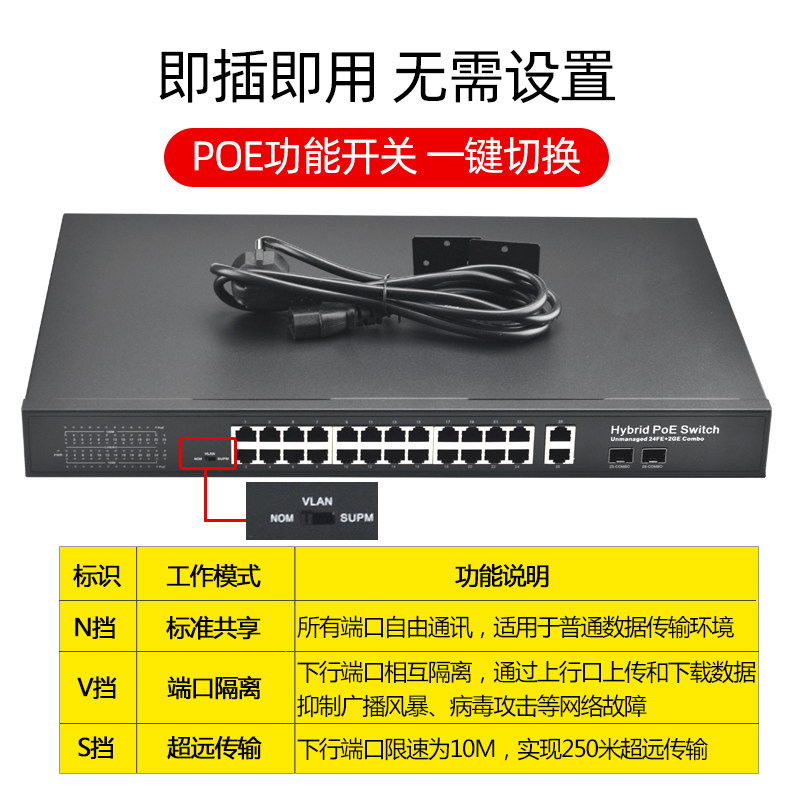 Isolation 24 POE Switch 1100 trillion 2SFP Gwangkou 48V State Label Automatic Identification Camera AP Power Supply