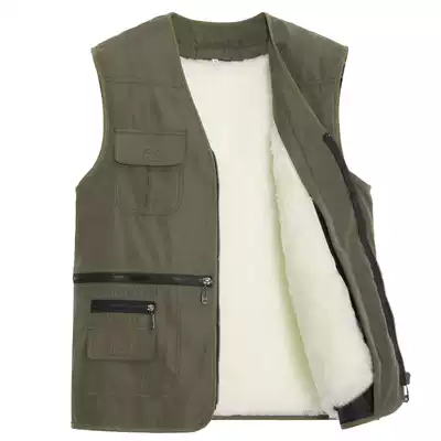 Autumn and winter middle-aged and old people's real leather wool vest men's warm cotton vest thickened waistband father's horse clip