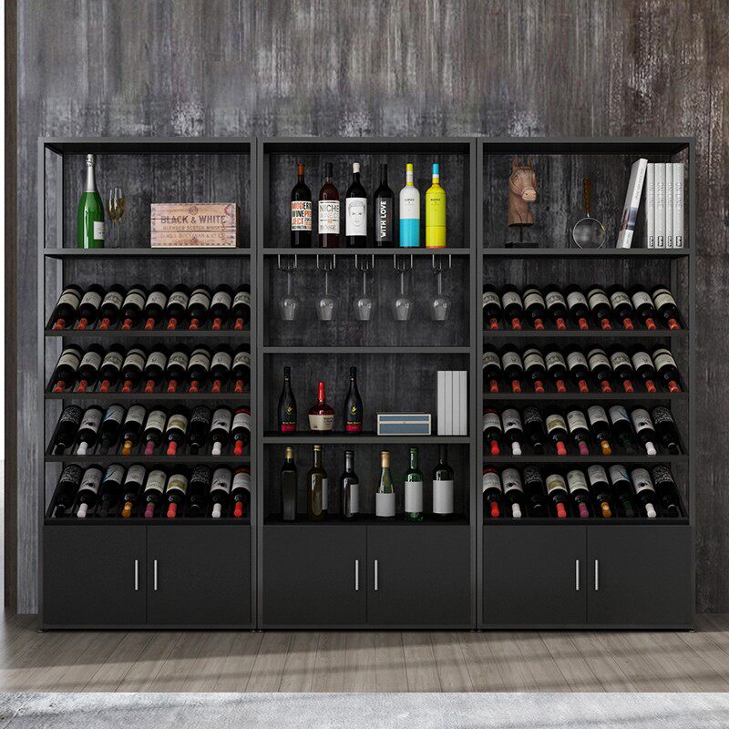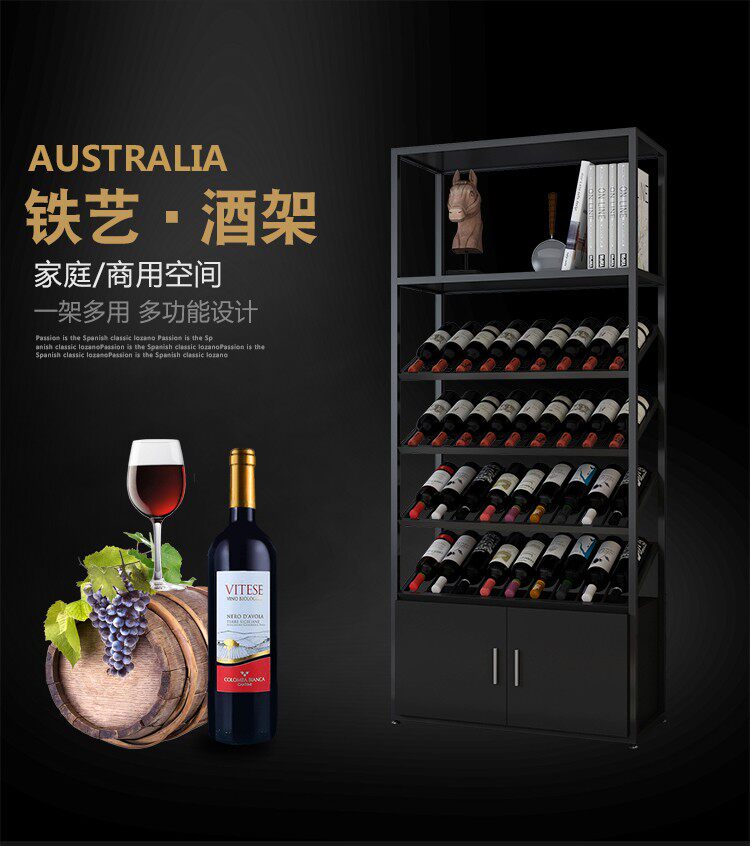 Wine cabinet wine rack wrought iron floor-to-ceiling display cabinet bar wine storage shelf wine glass rack simple multi-layer shelf