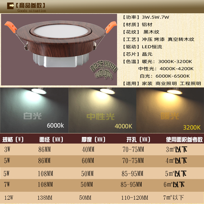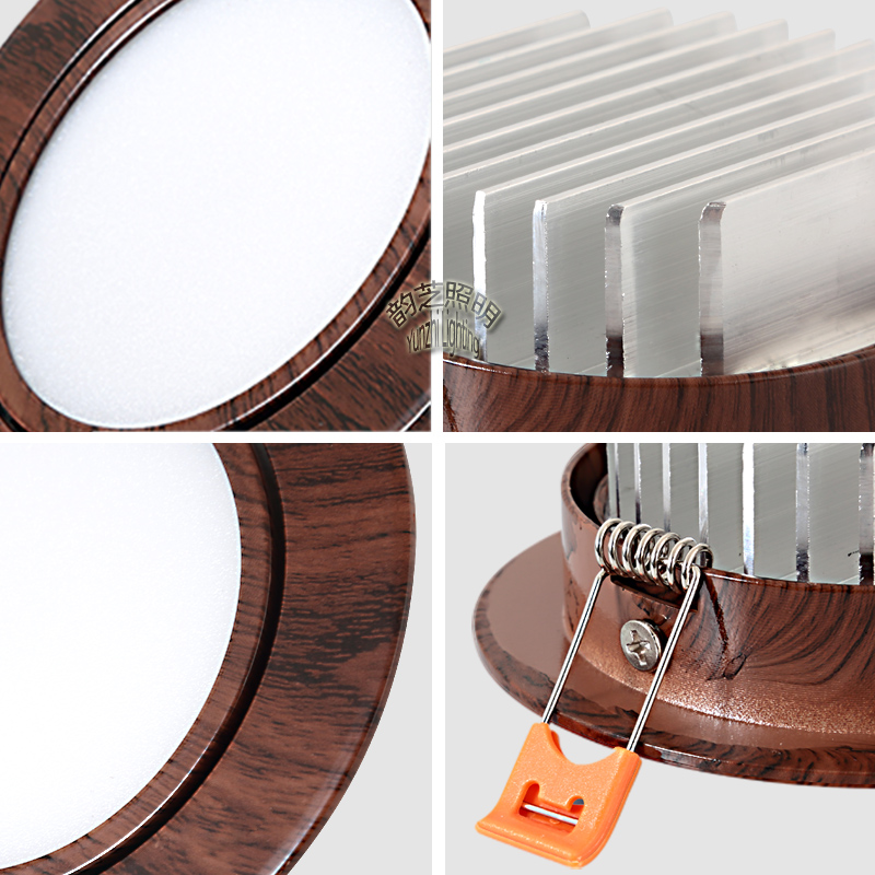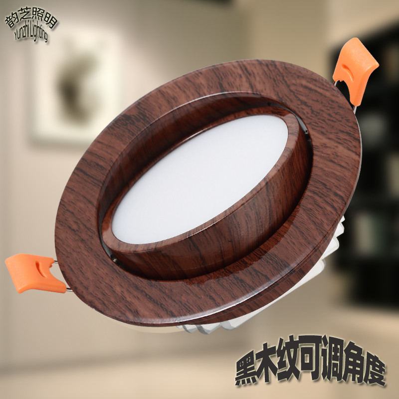 Led Chinese cylinder lamp concealed with wood grain ceiling lamp dongle lamp embedded hole lamp walnuts wood color intelligent change light spotlight