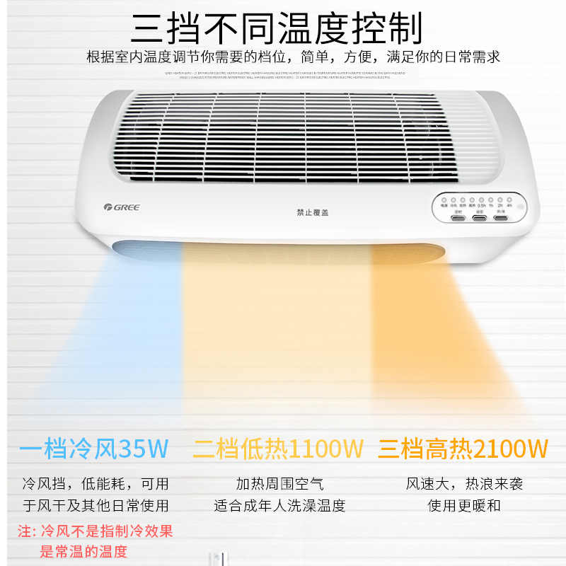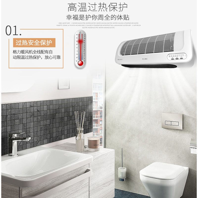 Gree warmer home wall-mounted warm air blower winter bathroom heating waterproof warm stove remote control speed heat electric heater