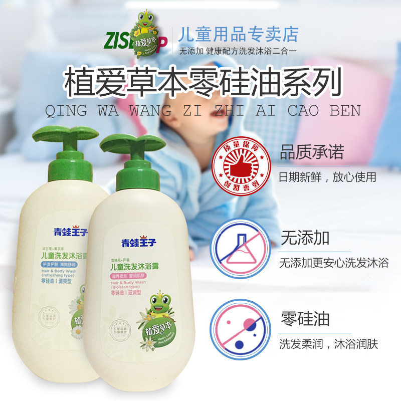 Frog Prince children's zero silicone oil shampoo shower gel herbal two-in-one refreshing moisturizing summer and autumn moisturizing family pack