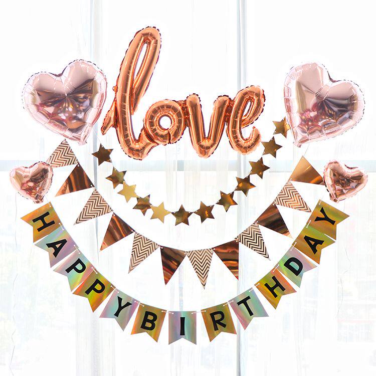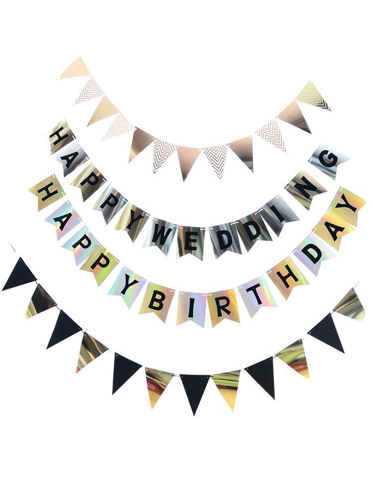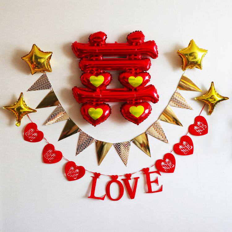Mirror wedding flag mirror birthday bar flag Black Gold Pennant non-woven red double happiness small package big LOVE small package wedding small package champagne birthday small package red heart Black love