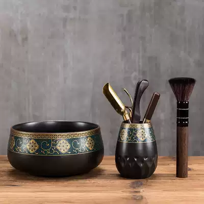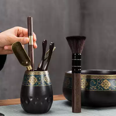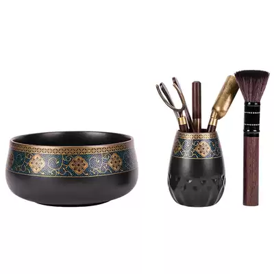 Rhyme tea to wash the ancient tea ceremony six gentleman rhyme tea wash plus the ancient rhyme of the six Gentlemen of the ancient tea wash plus six gentlemen plus tea pot rhyme tea wash with bamboo lid silver spot studded Lotus flowers tin tea wash with bamboo lid rhyme tea wash with bamboo cover to add ancient