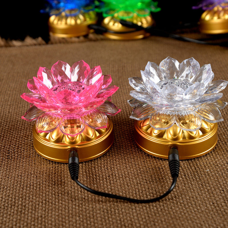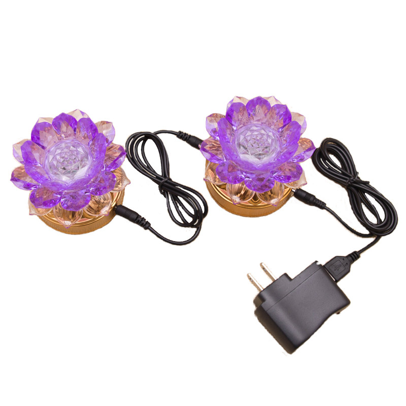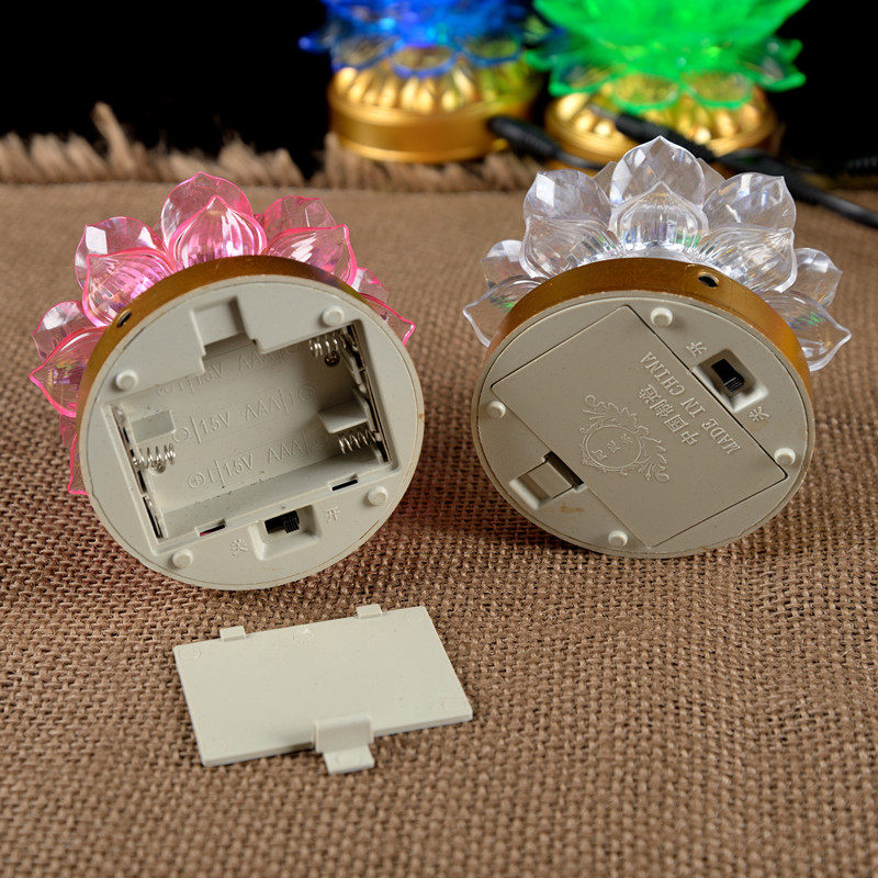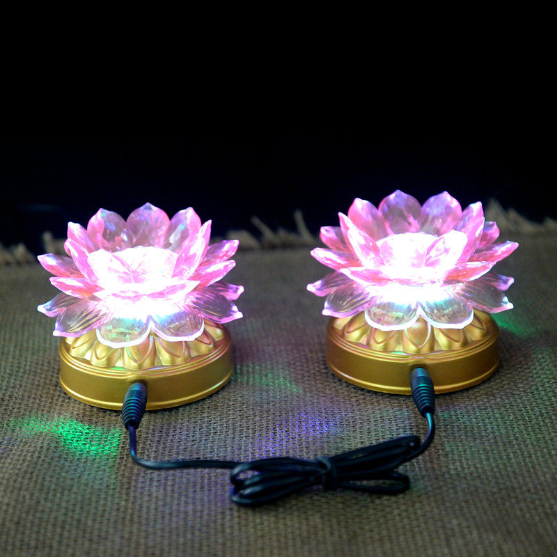 Battery power dual-purpose LED colorful color-changing lotus lamp seven-star colored lamp Buddha front lamp household long-life lamp pair