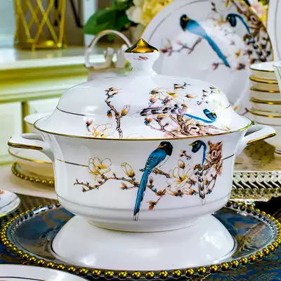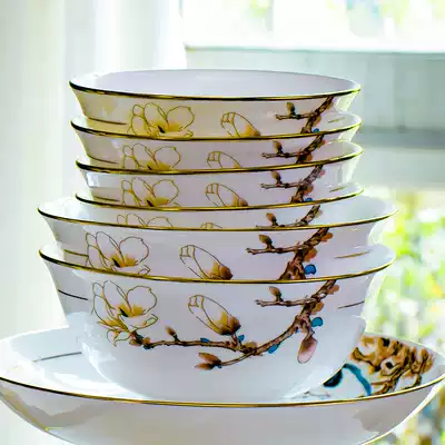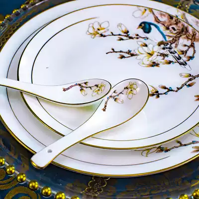 Jingdezhen bone china tableware, dishes, bowls, plates, spoons, household 60-piece porcelain bowls, tableware sets, hand-painted gold bowls