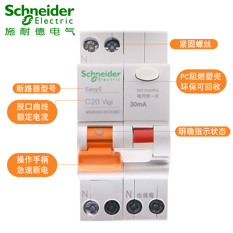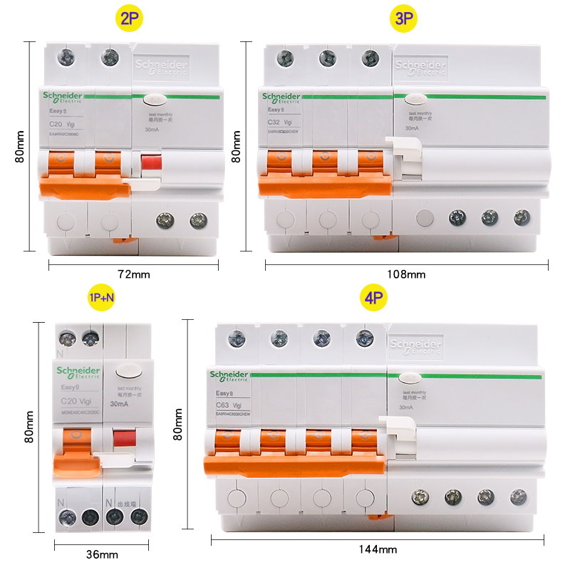 Schneider air switch 1p circuit breaker 4p leakage protection 2p open 63A leakage switch EA9R household 32A
