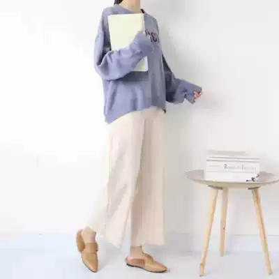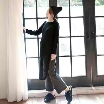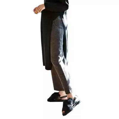 Pregnant women autumn and winter pants wear fashion plus velvet knitted wide leg pants straight tube nine-point large size loose trousers winter tide