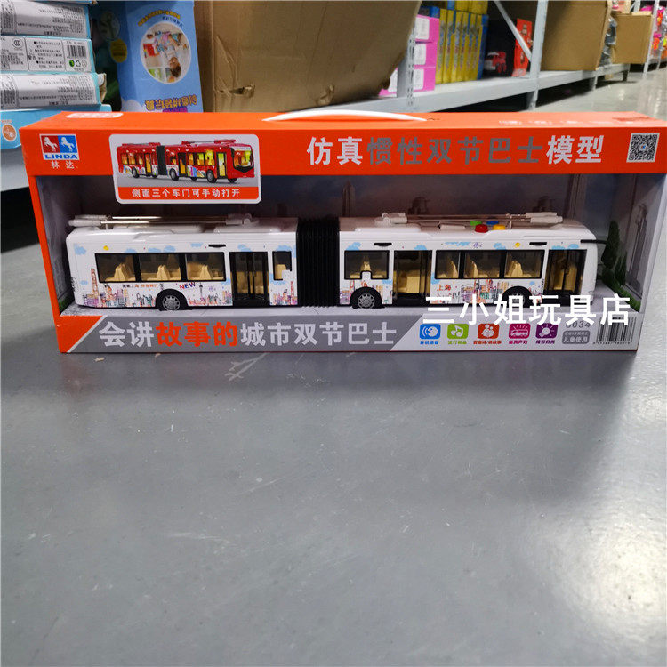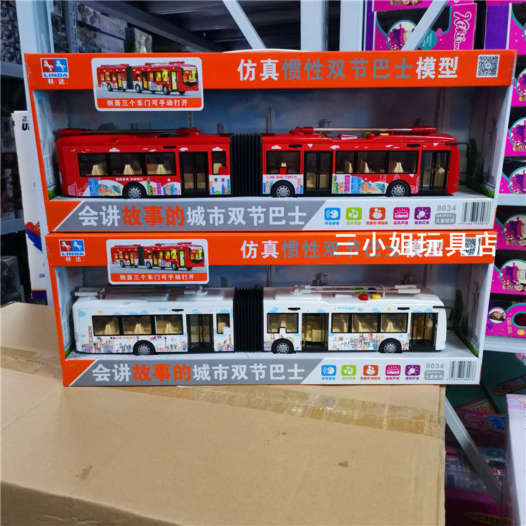 Linda will tell the story of the city double-section bus simulation inertial model boy toy bus toy car 8034