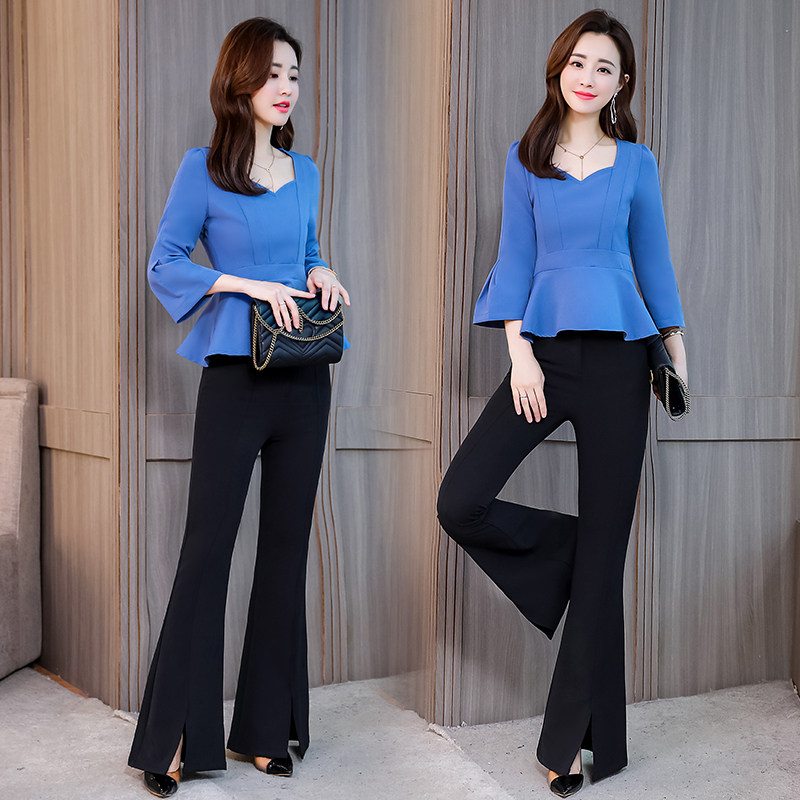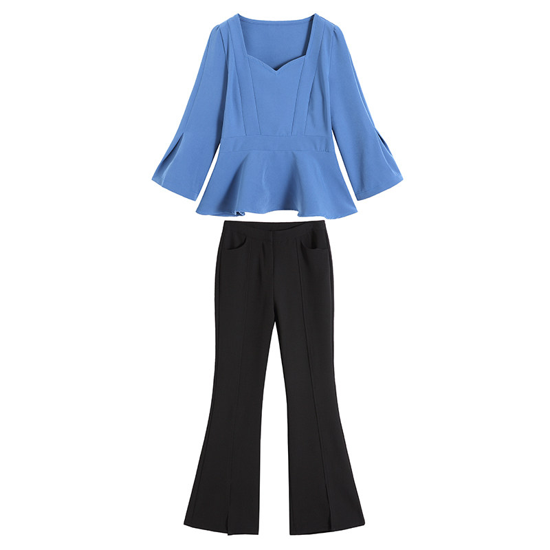 2022 Spring and Autumn Fashion New Waist Swing Short Top with Slim Fit and Thin Western Style Wide Leg Pants Suit Women