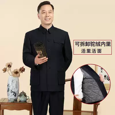 Autumn and winter Zhongshan men plus velvet thickened detachable suit elderly Zhongshan clothing father Old Man clothes grandpa clothes