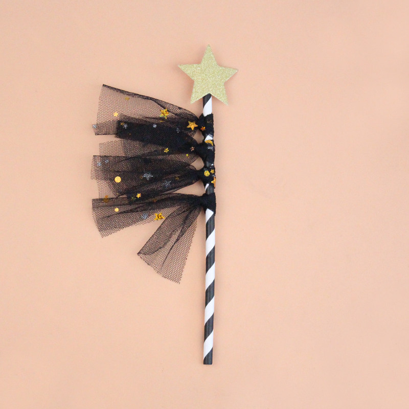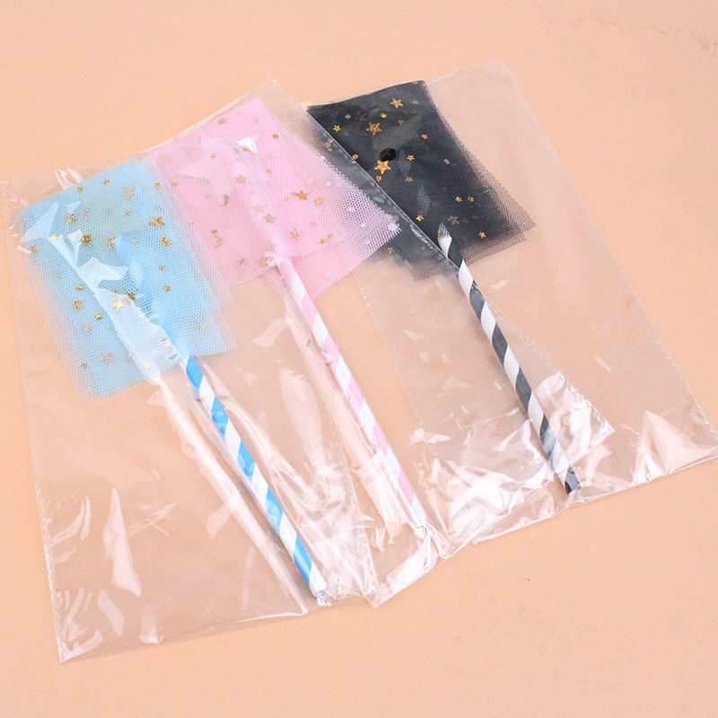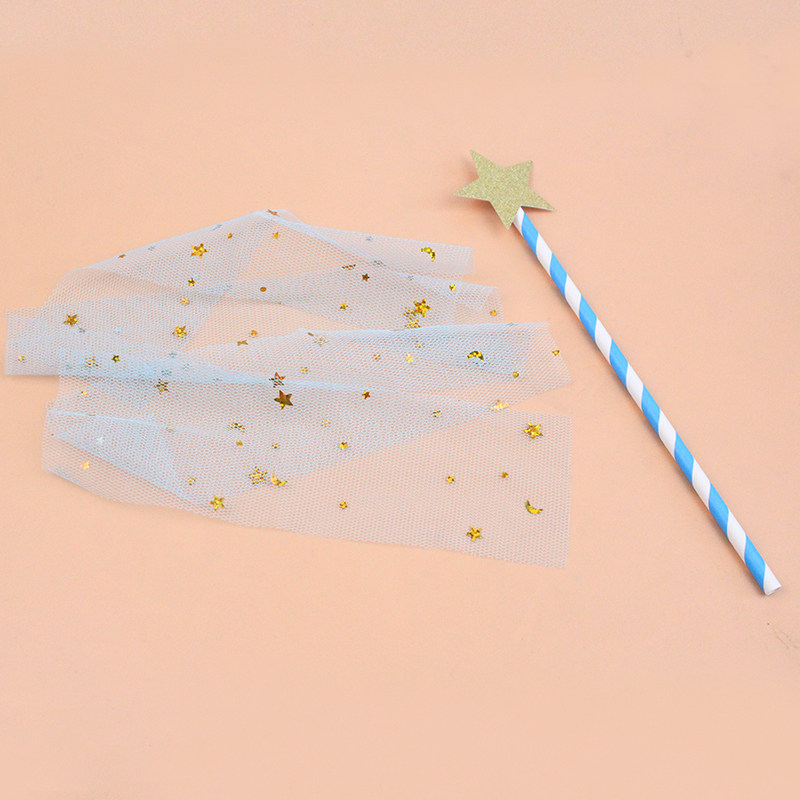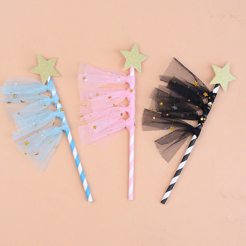 10-pack cake decoration five-pointed star Venus black powder blue mesh tassel plug-in card dessert table decoration batch hair
