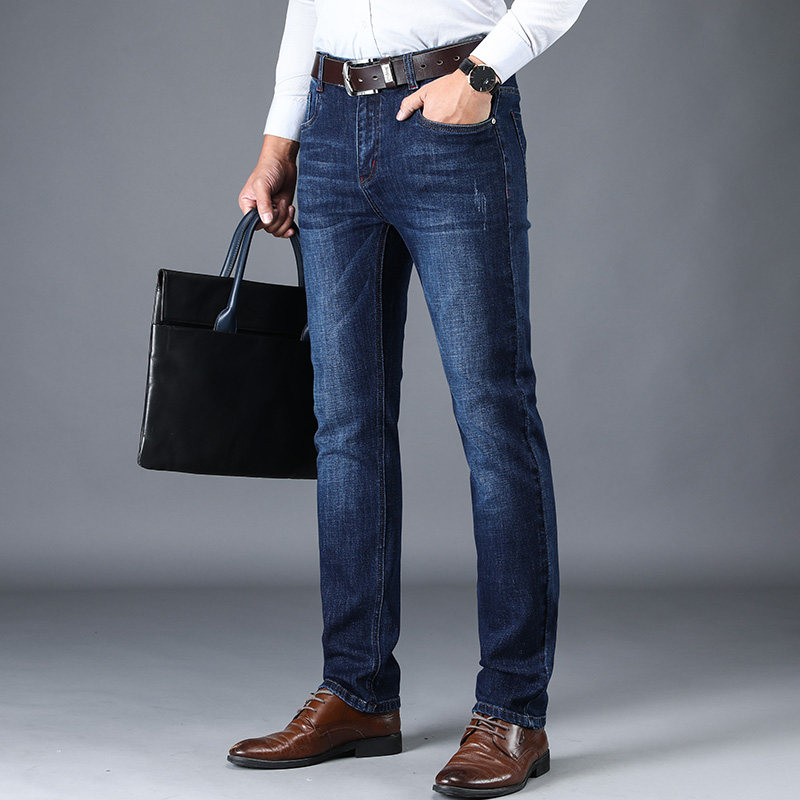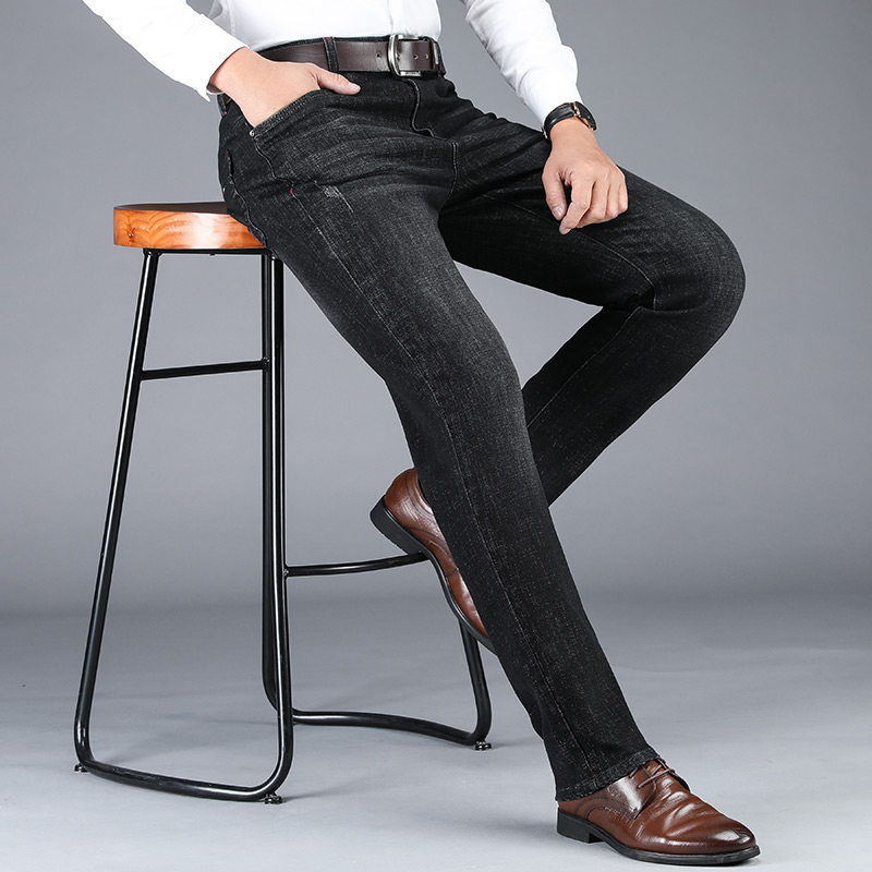 Brand jeans men loose straight tube mid - waist light business 2022 fall elastic trend jeans