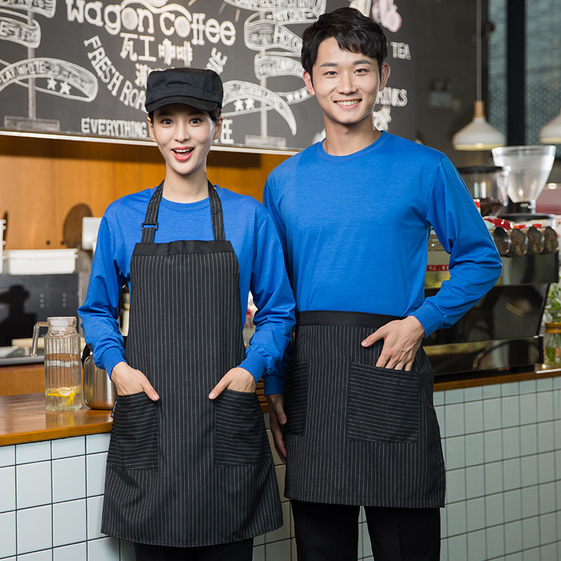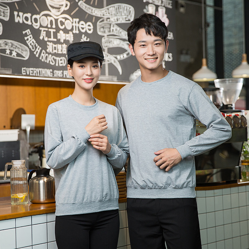 Hotel Dining Room Attendant Working Clothes Long Sleeve Spring Autumn Clothing Catering Hotpot Milk Tea Shop Round Neckline Thick Cotton T Custom logo