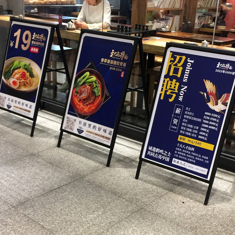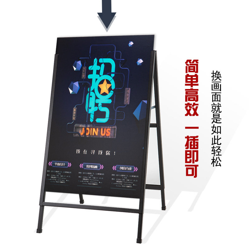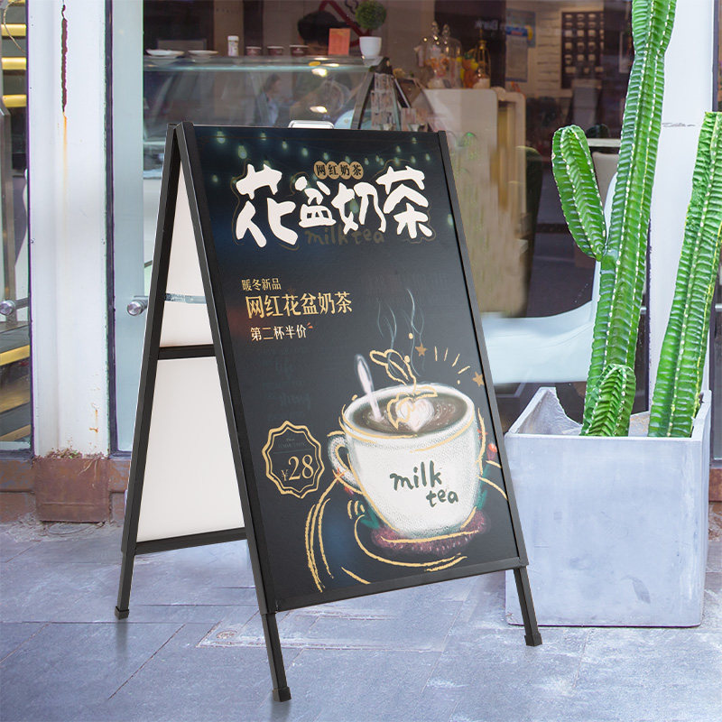 Outdoor Windproof Iron Baking Varnish Poster Rack Milk Tea Coffee Shop Doorway Show Shelves Double-sided Folding Billboard Kt Board