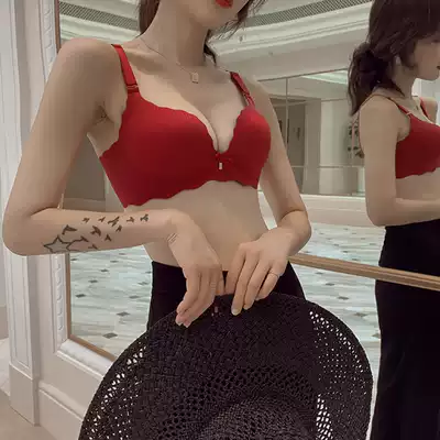 Underwear set women's non-steel ring beauty back seamless glossy bra gathered small chest thick upper bracket thickened sexy bra