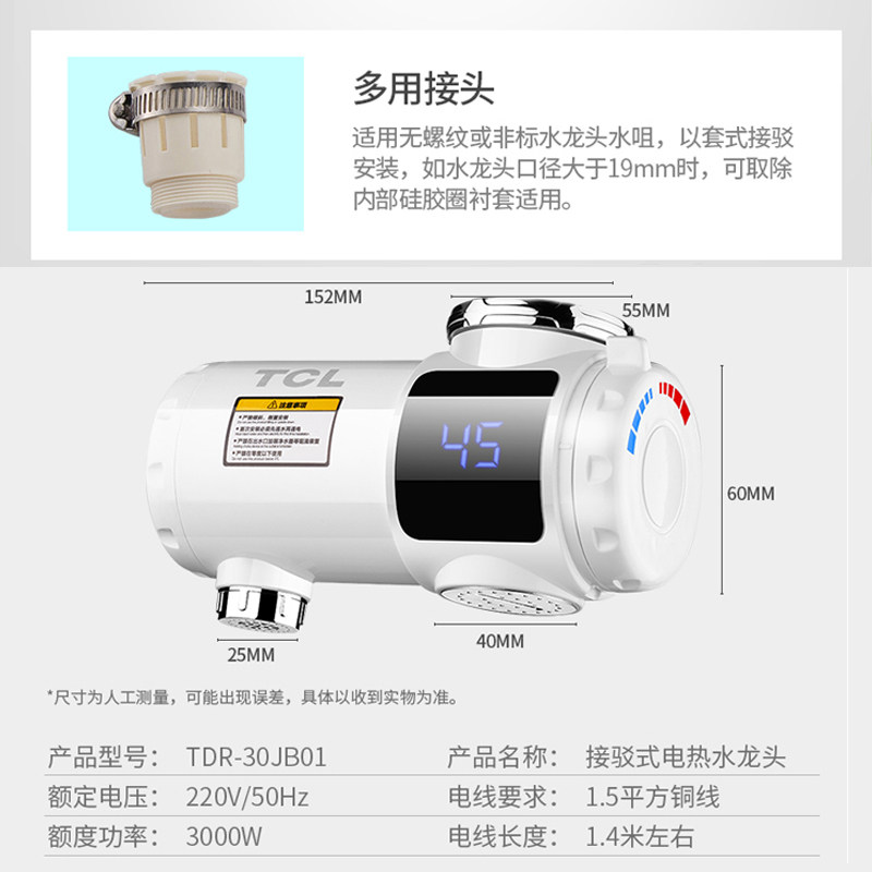 TCL electric faucet installation-free fast heating household instantaneous heating connection instantaneous electric water heater small water heater