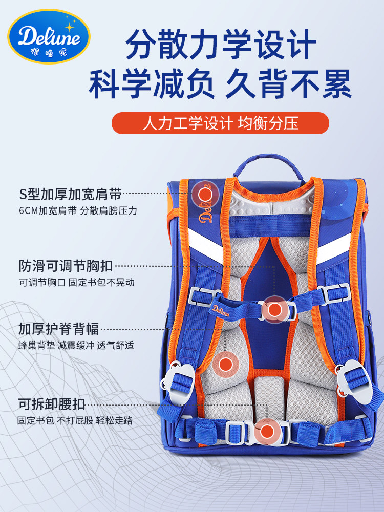 Delune schoolbag boys elementary school students reduce the burden of crest protection children's first, second, third to sixth grade female backpack ultra-light