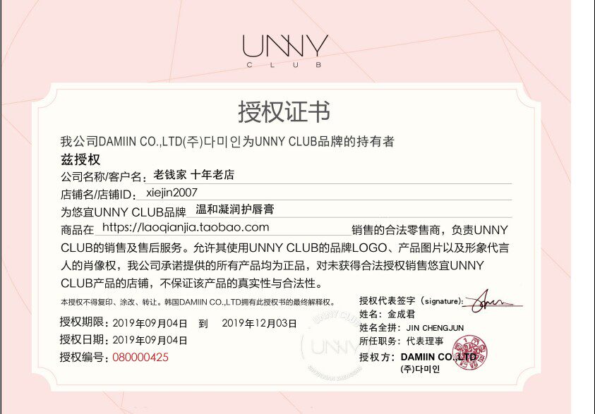 The registration certificate number of the cosmetic filing number: