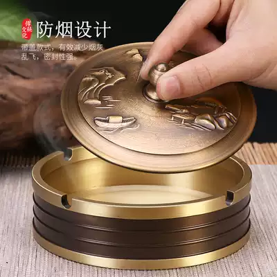 Large pure copper ashtray Modern simple creative personality trend household indoor coffee table windproof with lid copper ashtray