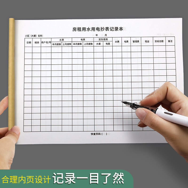 Rent, water, electricity, meter reading record, landlord, water and electricity, rent collection, rental registration, intermediary house rental registration, this copy, A4 large tenant rent collection record