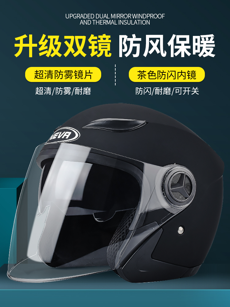 Neva electric car safety helmet Men and women four seasons universal anti-fog double mirror winter warm half helmet electric car safety head cap