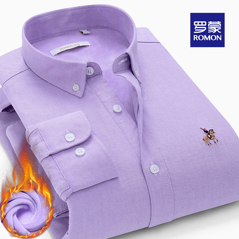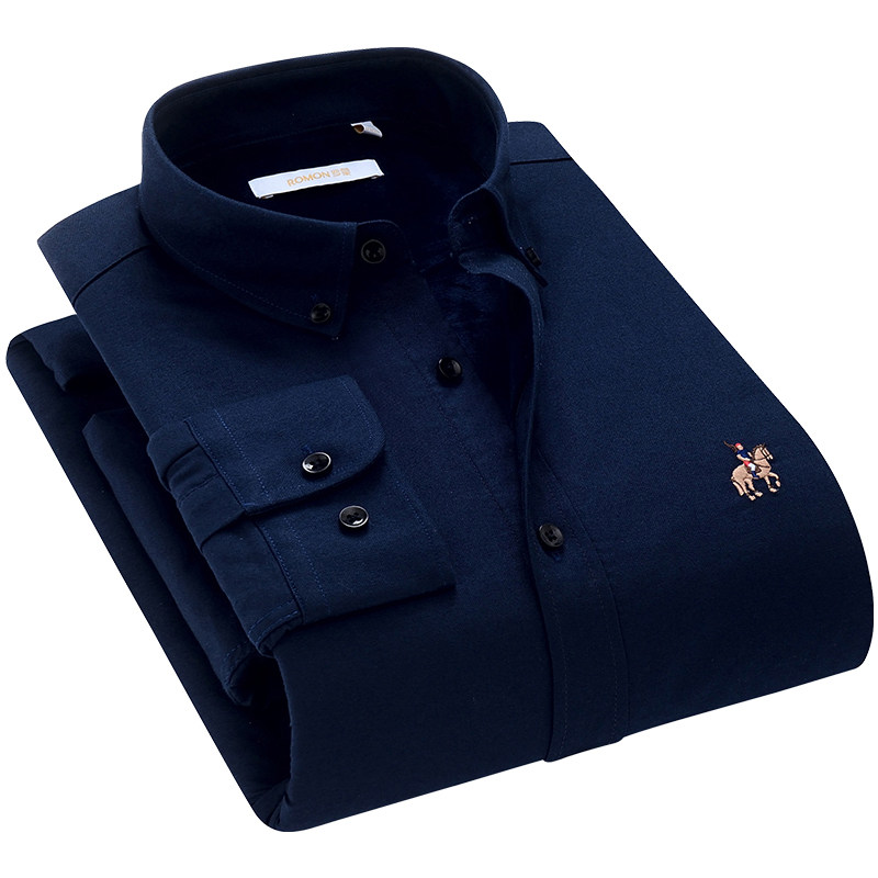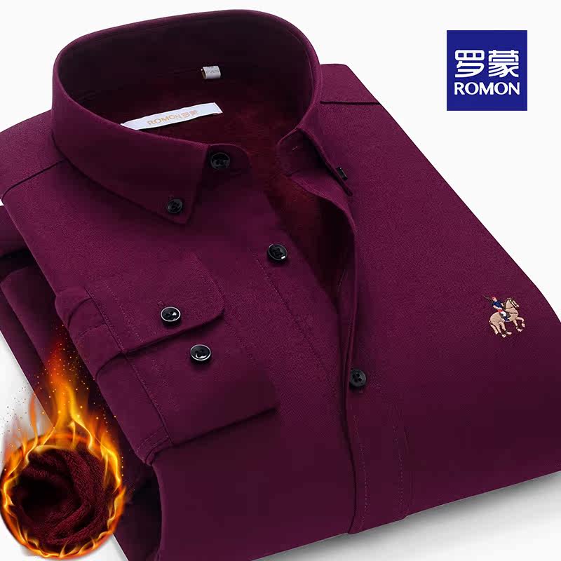 Romon Romon Flannel Thicken Winter Warm Shirt Men Middle Aged Pure Cotton Casual Loose large size Men's clothing