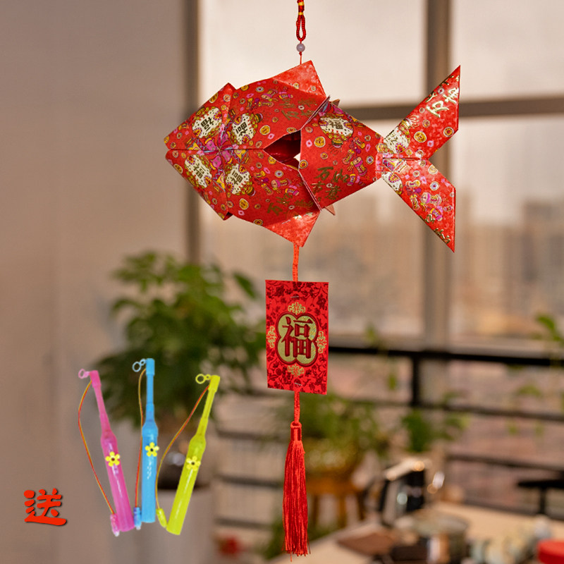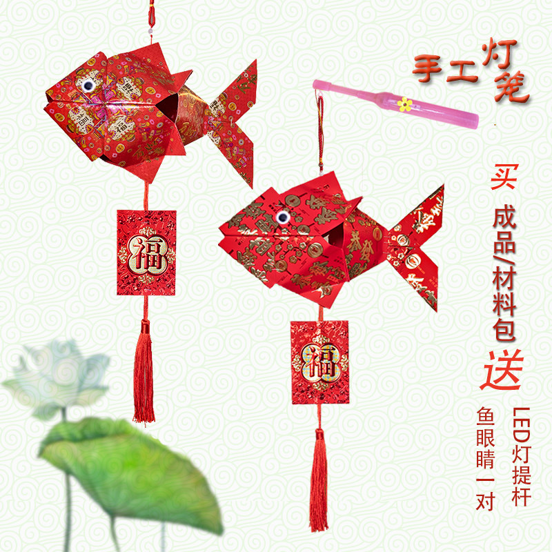 Mid-Autumn Festival cartoon fish lantern handmade red envelope lantern New Year children's environmental protection parent-child diy homework finished material package