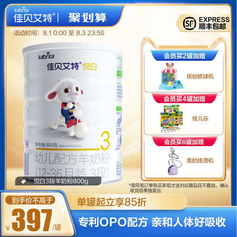 SF] Jiabei Aite flagship baby goat milk powder 1-3 years old 3-stage Yue white 800g OPO A2 protein
