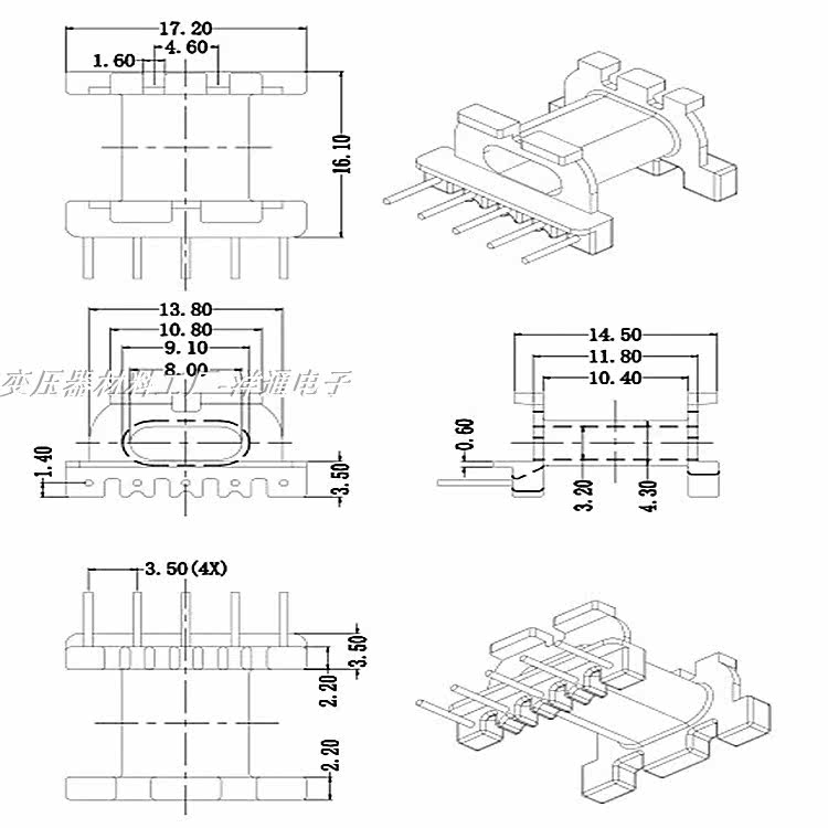 EPC17 skeleton horizontal 5 0EPC17 magnetic core skeleton horizontal 5 0 needle EPC17 magnetic core EPC17 chuck hole 12mm-EPC17 chuck hole 10