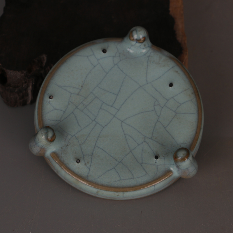 Song Ru Kiln Green Glaze Open Sheet Small Number Three Foot Wash Imitation Ancient Make Old Porcelain Bou Shelf Family Residence Decoration Collection Hem