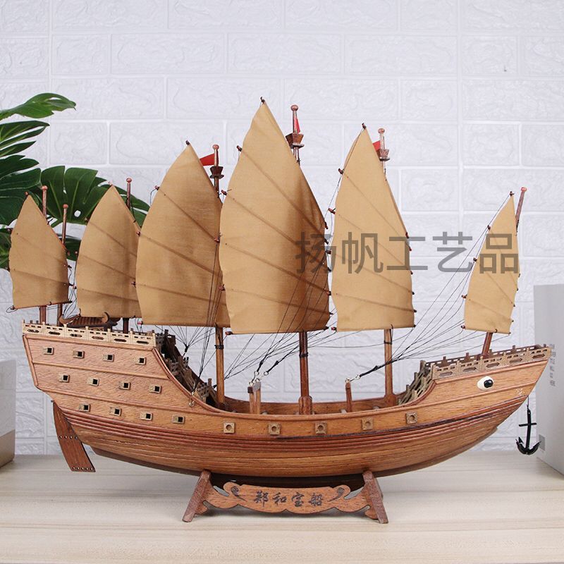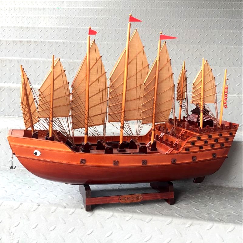 Handmade Chinese ship Zheng and Lower Atlantic Treasure Boat Model Warboat Red Wood Shipbuilding Wooden Bogu Shelf Business Gift Collection