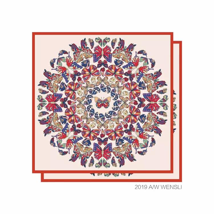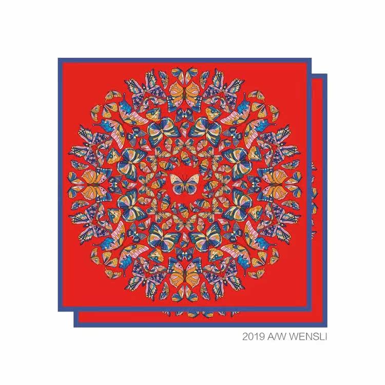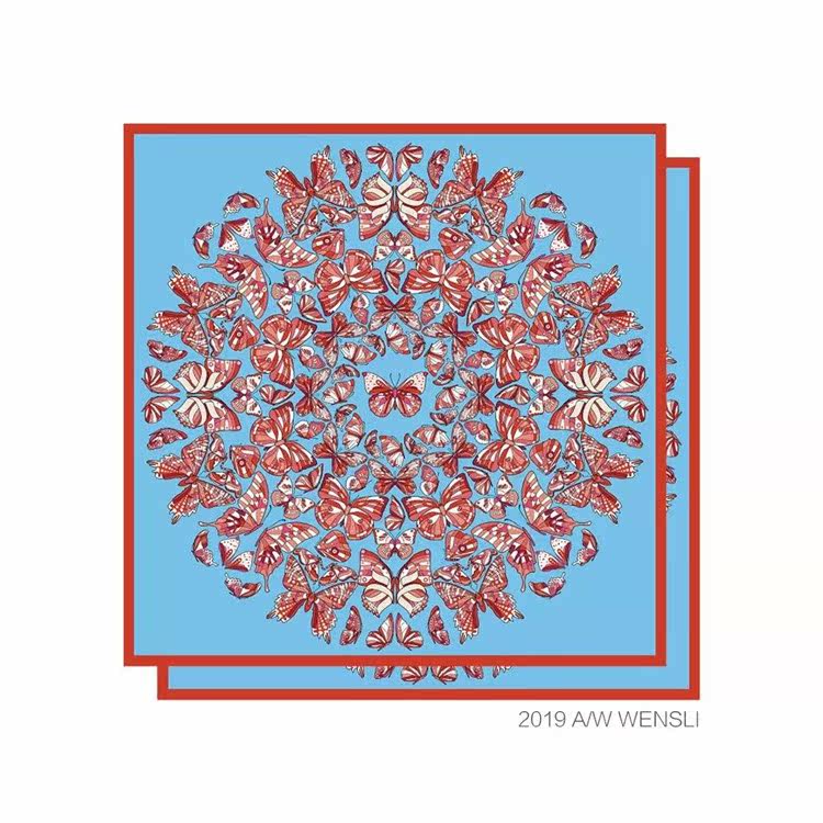 Wensli Masterpiece real silk scarf double-sided printed large square towel 2019 autumn winter new butterfly blue pink gift box