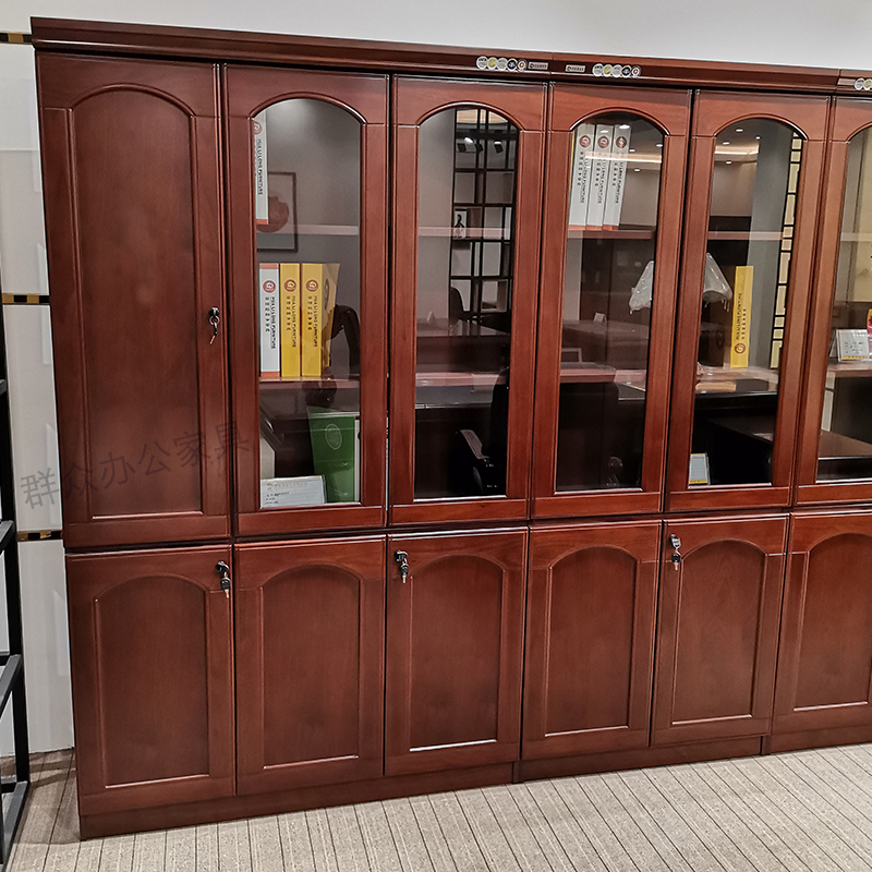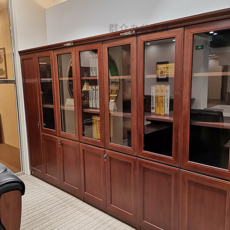 Office file cabinet Solid wood leather 2 meters two meters high paint bookcase Glass door Simple modern storage information cabinet