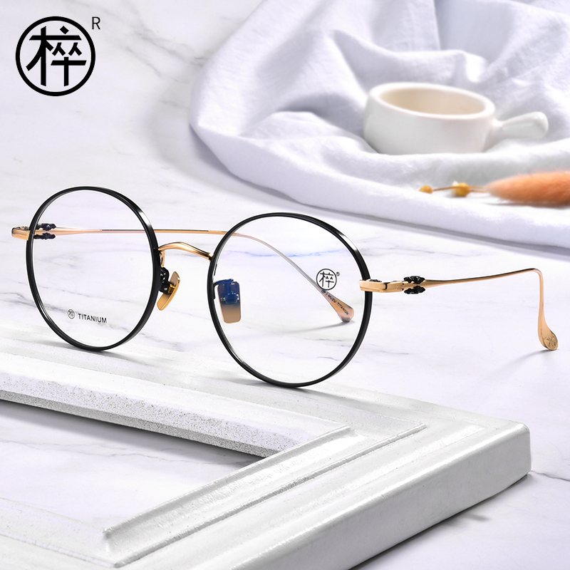 Wooden Pawn Super Light Pure Titanium Anti-Blue Myopia glasses Women with Degrees Eye Frames Retro Vegan Glasses Near-Glasses Men