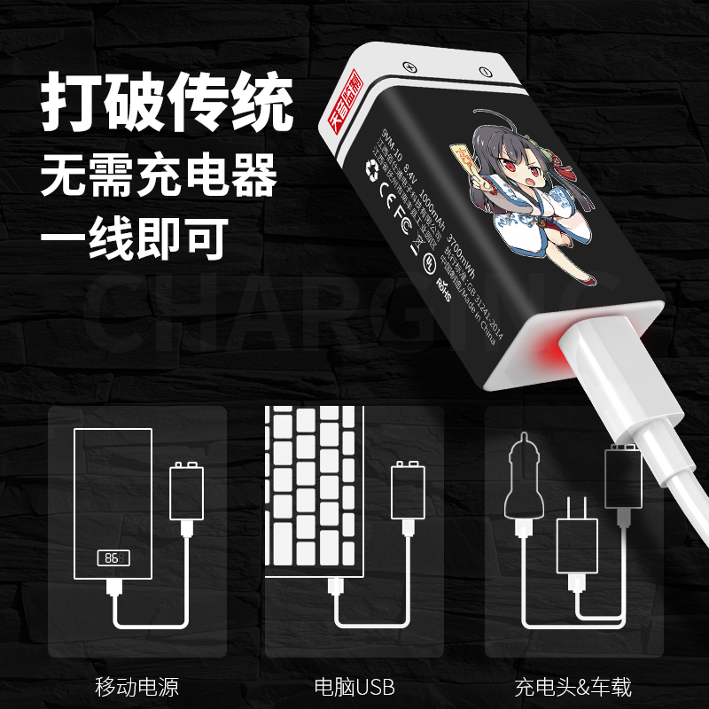 1 * 9V-USB constant voltage Li-ion battery 1000mAh (send charging cable*1)