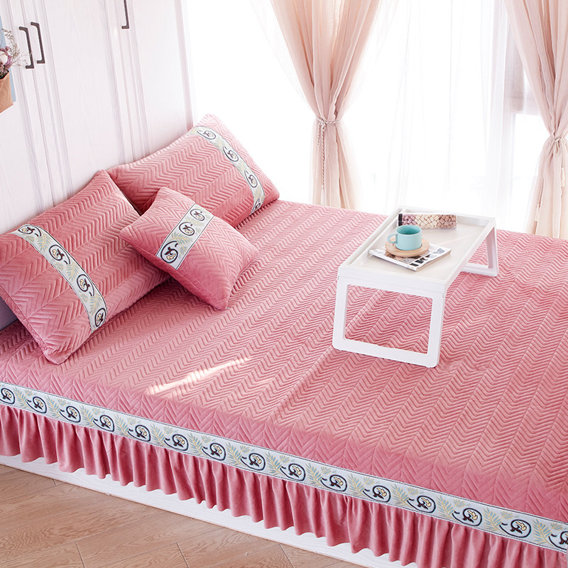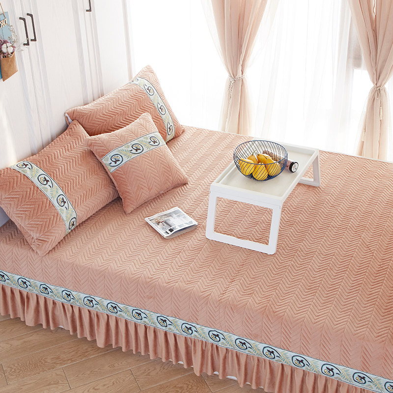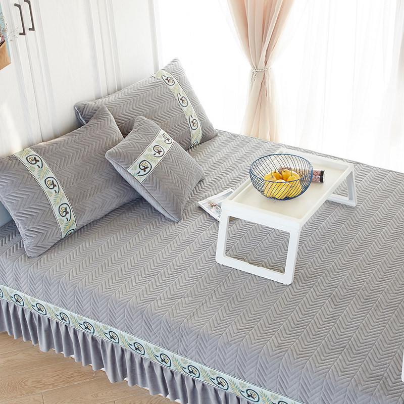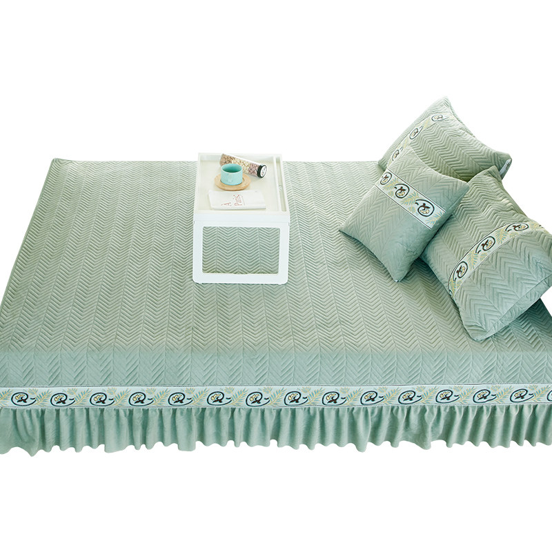 Nordic tatami bed single kang cover custom made non-slip crystal velvet kang single ondol mat European quilted kang skirt