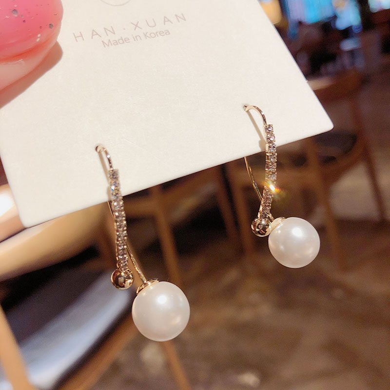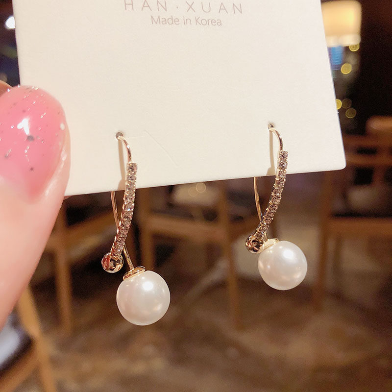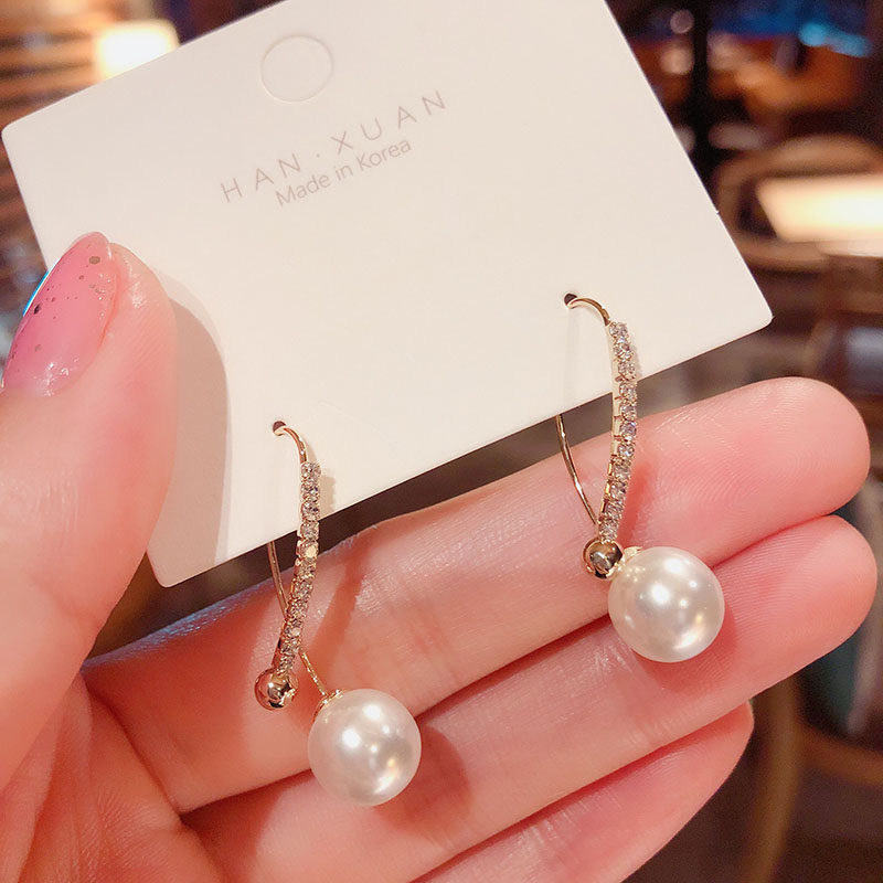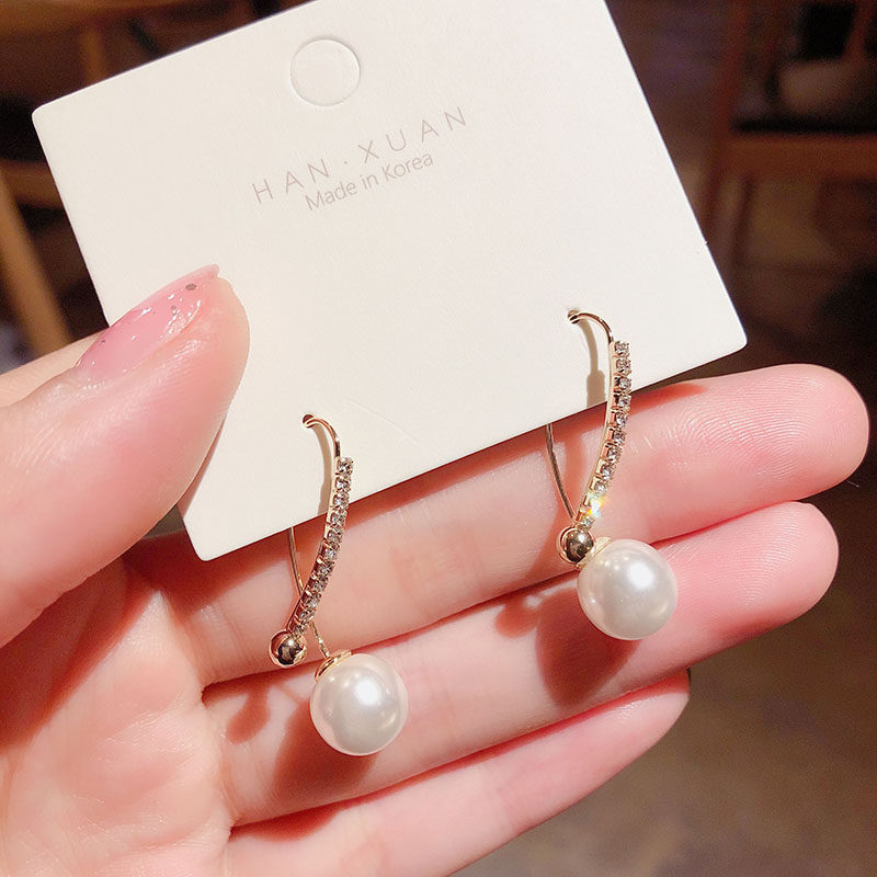 South Korea Dongdao Minimum Virtual Design Female Personality of Pearl Earring Female Personality with Cold Air Temperature Water Drilling Ear Nails