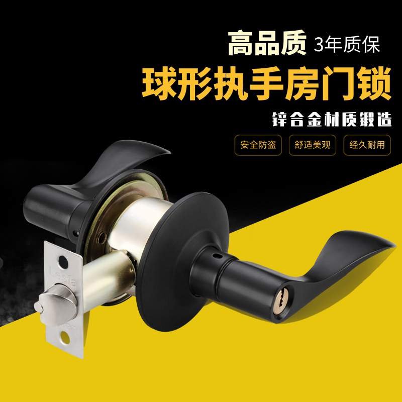 Black stainless steel handle door lock spherical lock chamber handle room door toilet lock bedroom round ball lock universal-Taobao