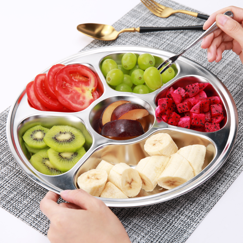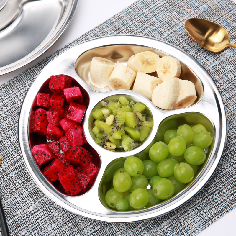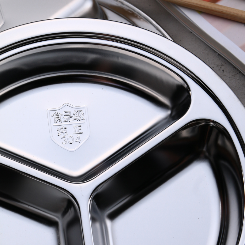 Divided plate 304 stainless steel plate round children's kindergarten household adult fast food plate separation plate