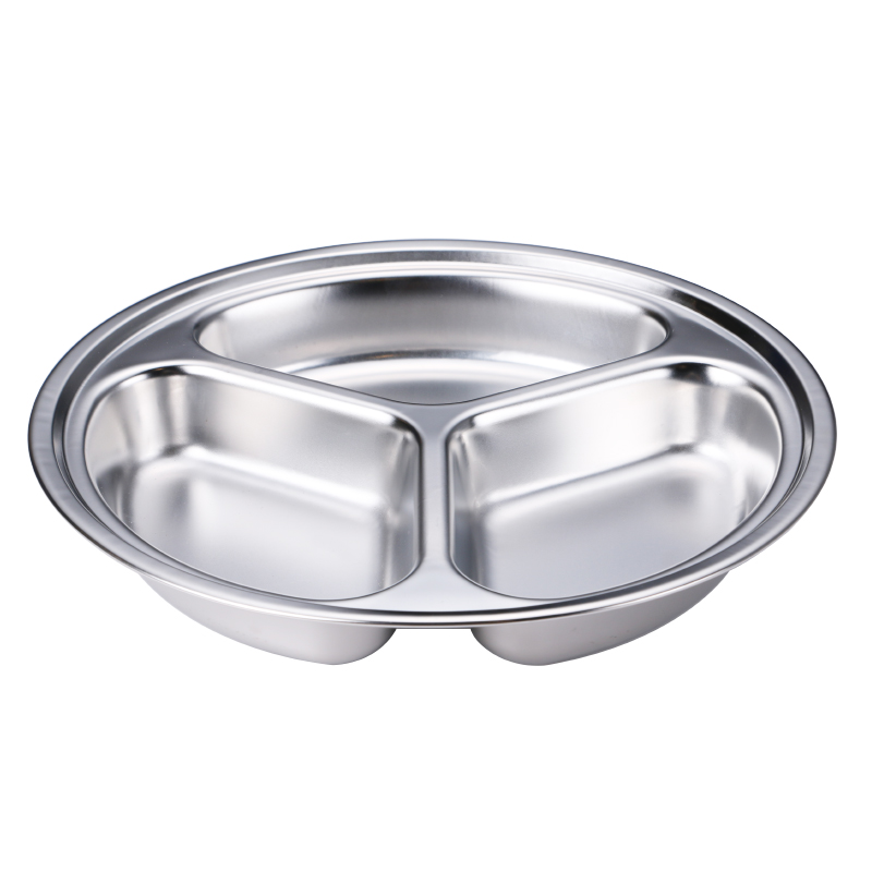 SUS304 Deepened Round Dinner Plate-3 Compartments 20cmSUS304 Deepened Round Dinner Plate-3 Compartments 22cmSUS304 Deepened Round Dinner Plate-3 Compartments 24cmSUS304