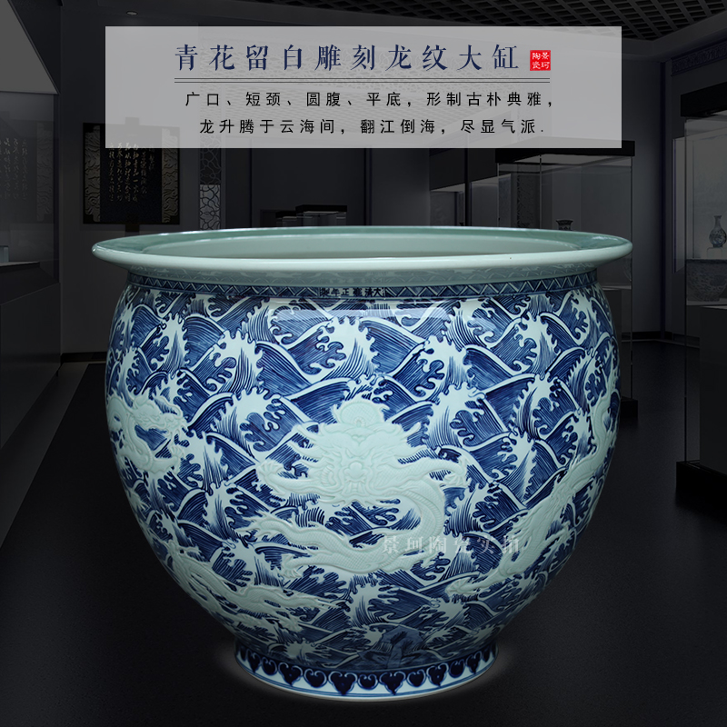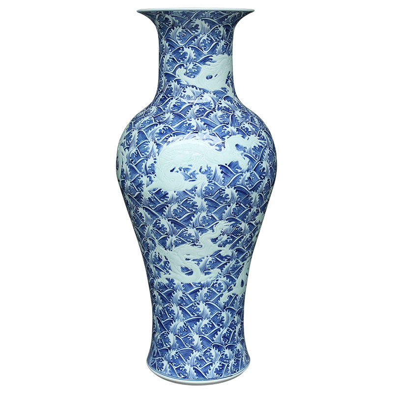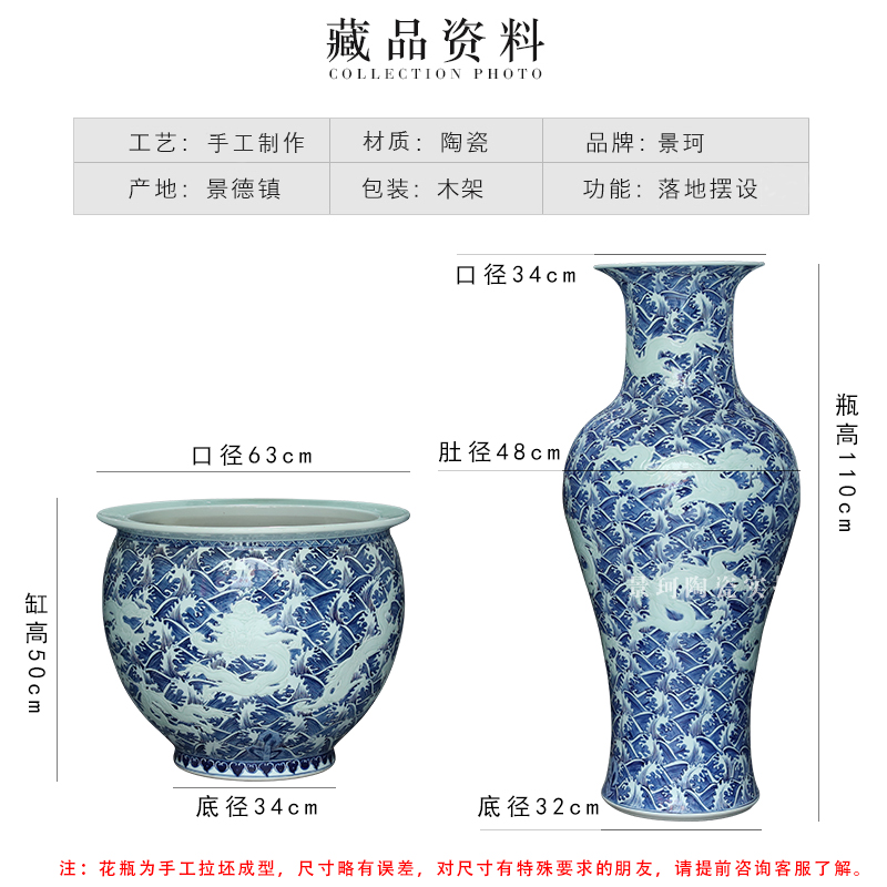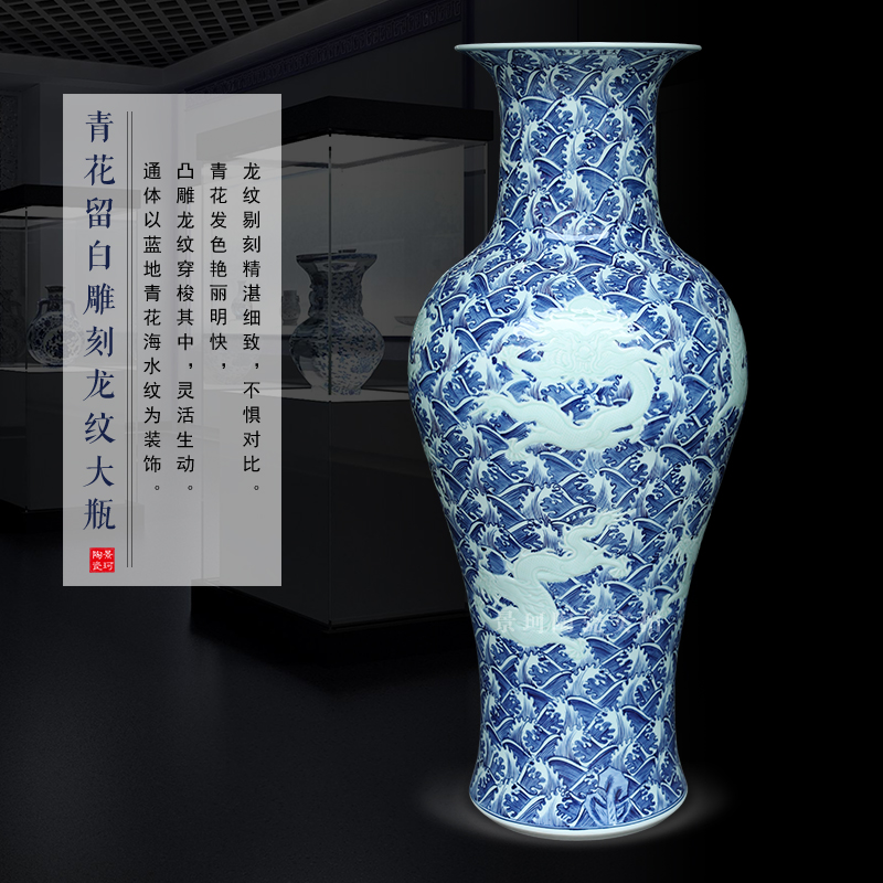 Jingdezhen ceramic ware Qingflowers Remain white engraving Longgrain Three sets of large vase swinging piece Living room with floor large fish tank