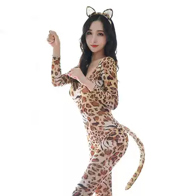 Q028 erotic underwear sexy temptation split Ice Silk jumpsuit cos tight uniform open gear