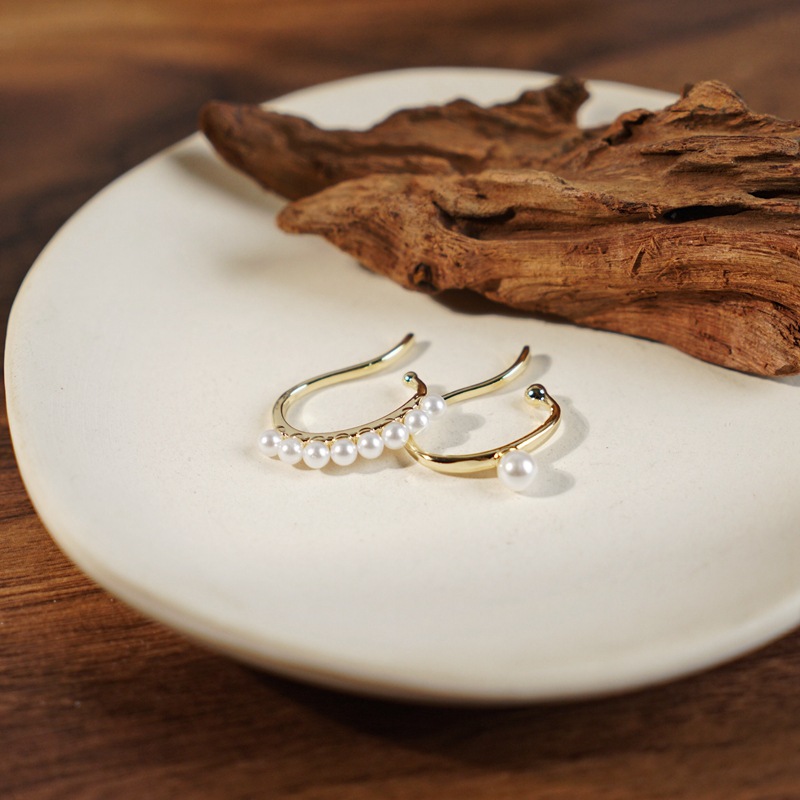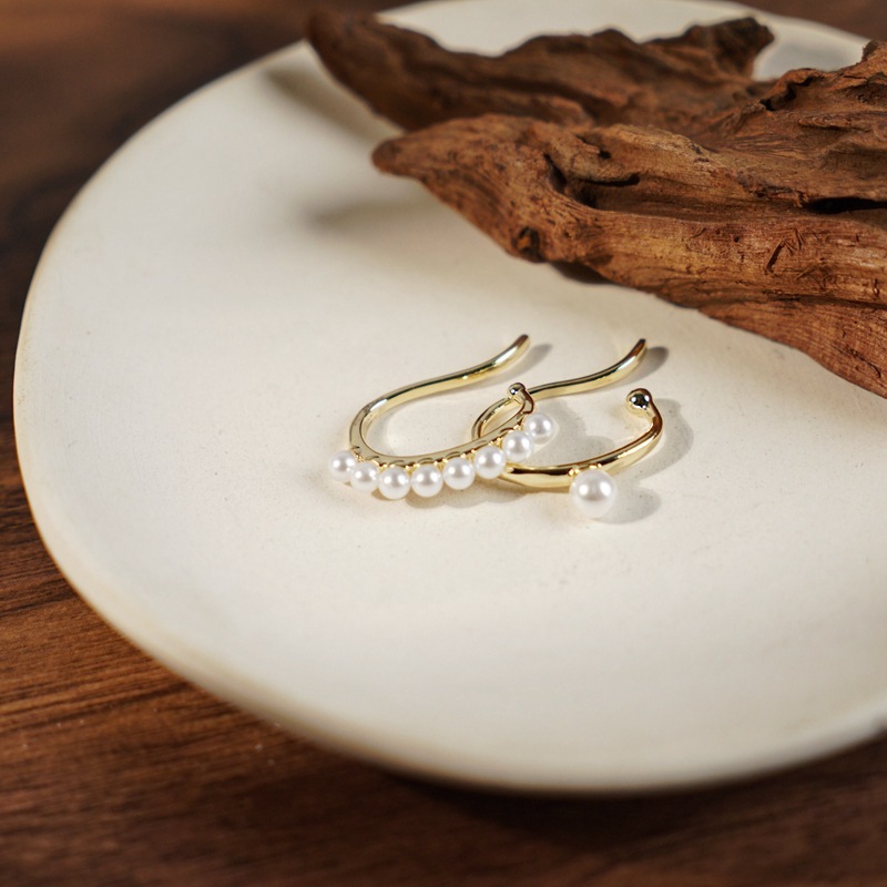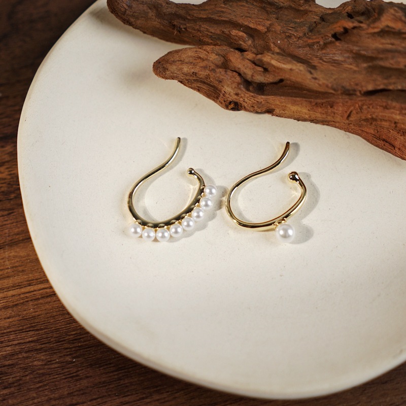 Geometric Pearls Ear Osteoclaves Without Earthy Holes Women Lukewarm Wind Superior sense retro minimalist Personality Cochlear Clips Tide Ear hanging