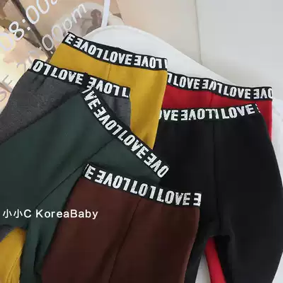 Korean baby dress letter waist plus velvet pants 2021 autumn new boys and girls Baby pants trousers