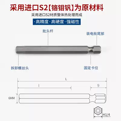 1 4 Hexagon socket electric screwdriver head 75-100mm pneumatic screwdriver head hexagon socket 6 35mm screwdriver head electric screwdriver nozzle electric screwdriver