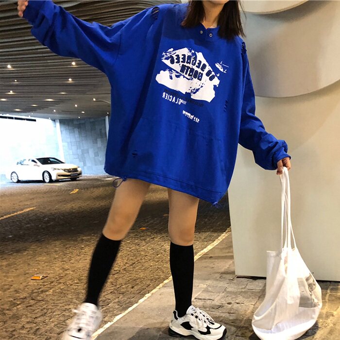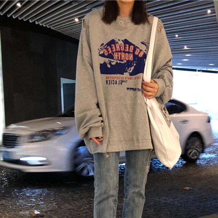 Early autumn sweater female Korean version of the new net red Hong Kong style ulzzang hooded thin jacket tide student loose top